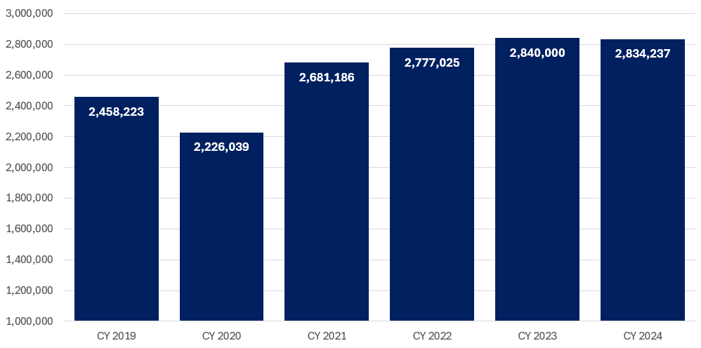 FIGURE 1: Number of Inpatient Discharges, Kentucky Medicaid, CY 2019 - 2024