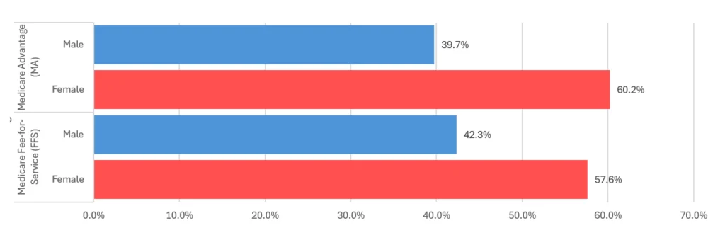 FIGURE 3: Medicare Inpatient Cases by Gender, Traditional Medicare and Medicare Advantage (MA), CY 2024